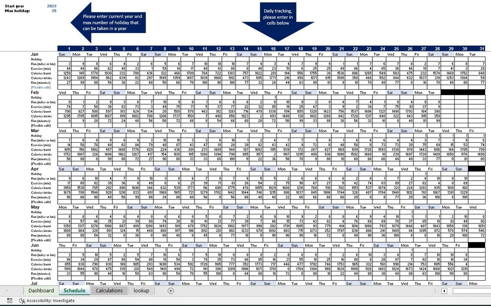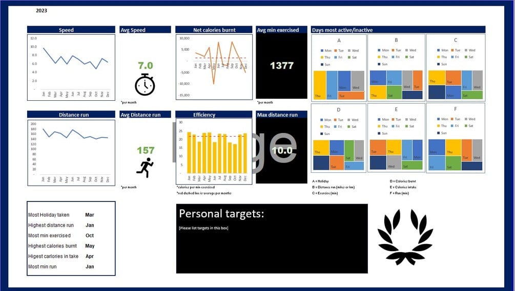 Our Personal Tracker Excel Template goes the extra mile by highlighting the days where you've been most active or inactive. By identifying patterns in your activity levels, you can make informed decisions about your workouts and adjust your routine accordingly.