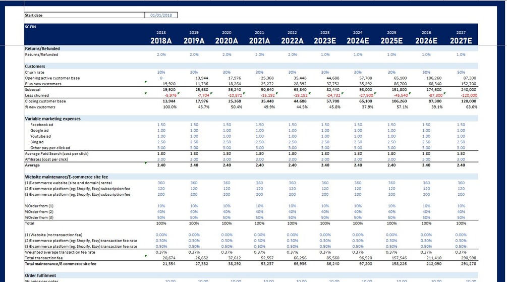 E-Commerce Excel financial model